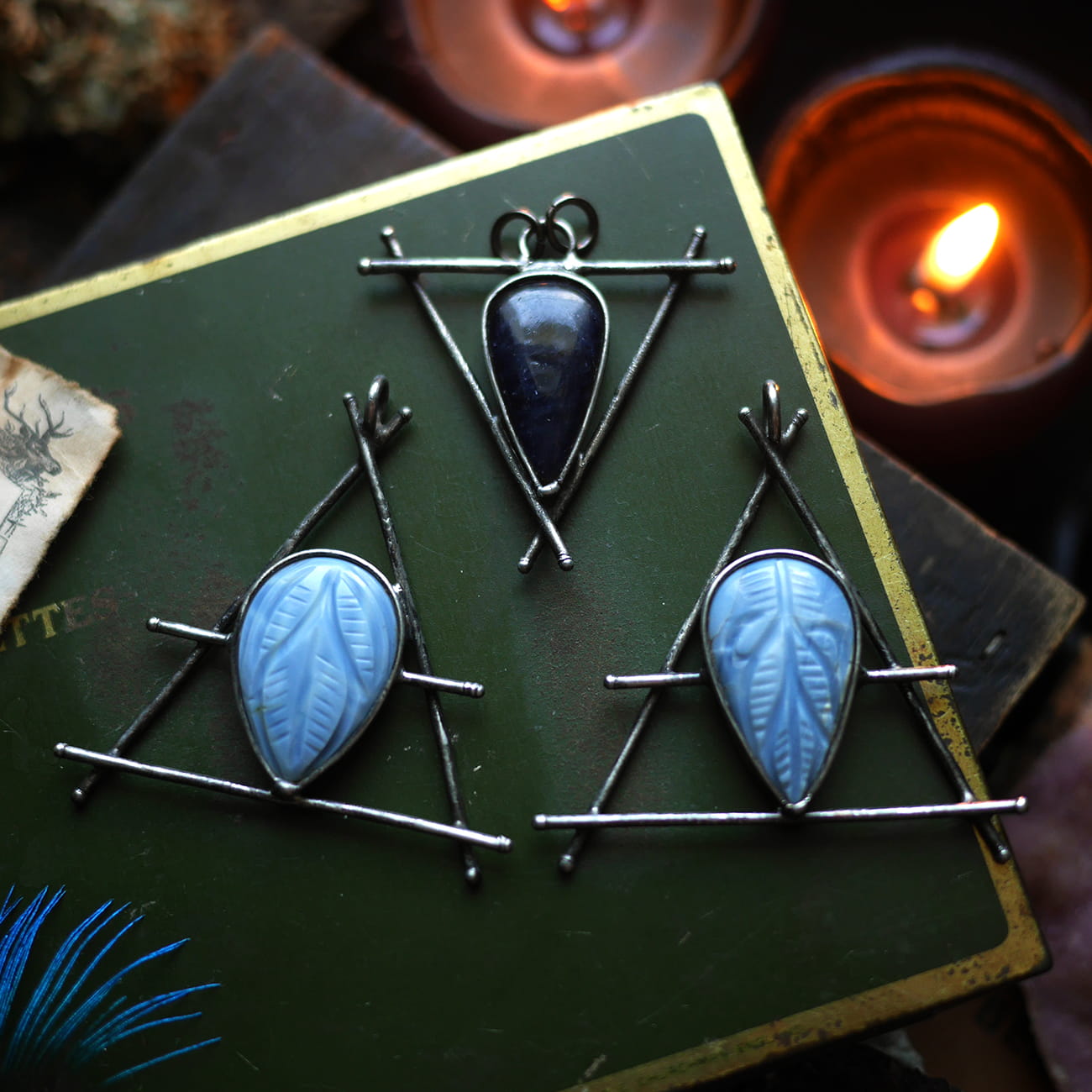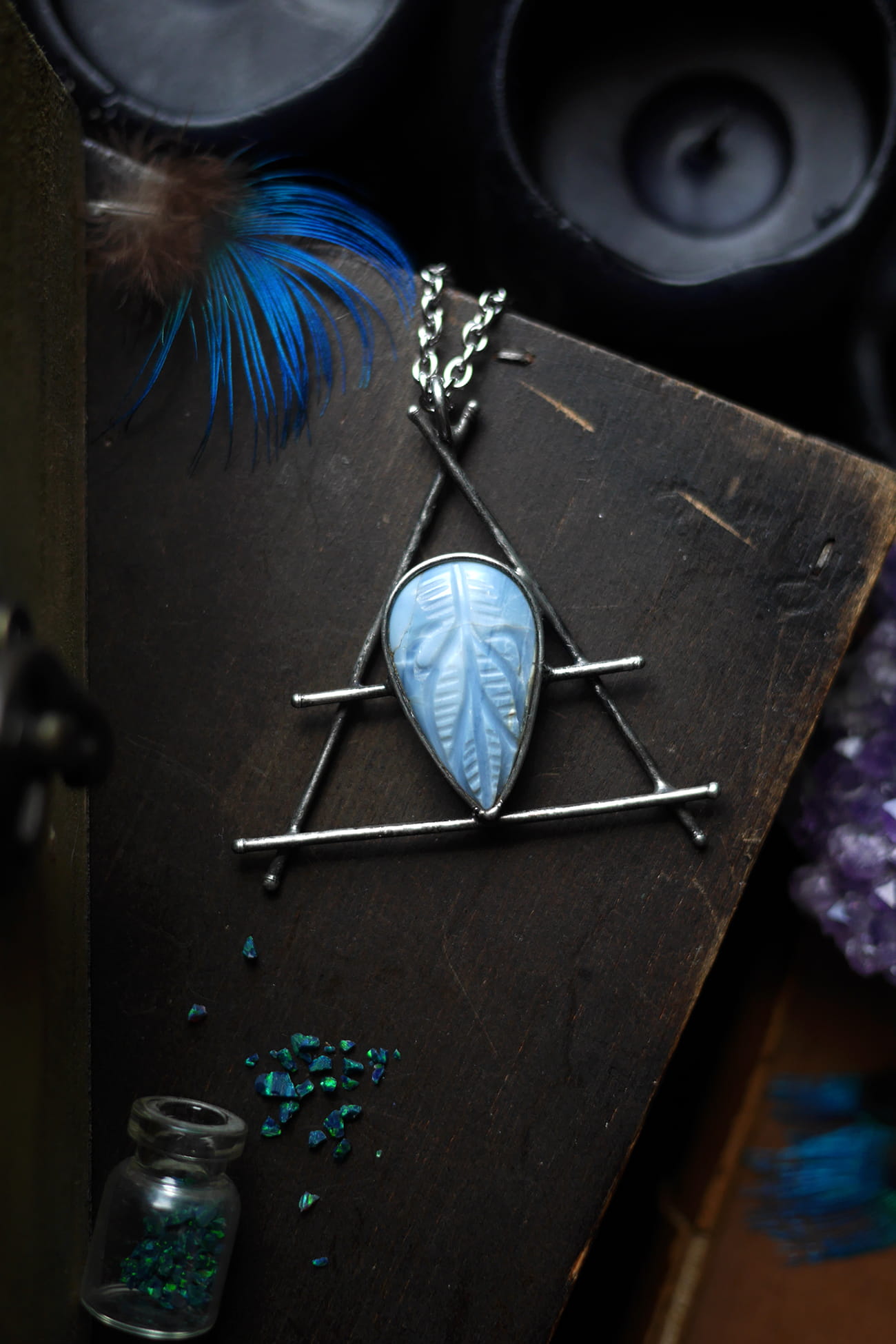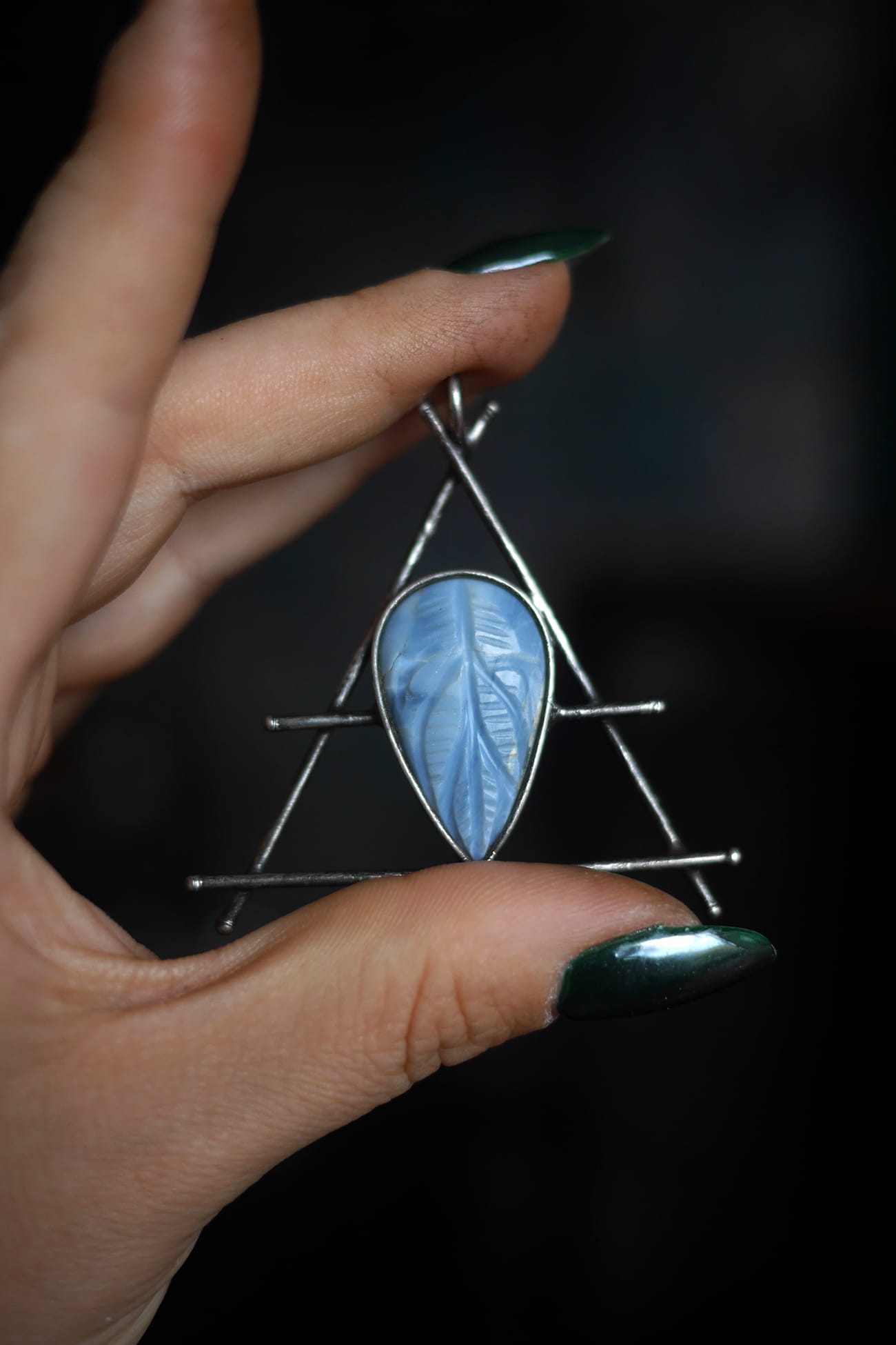 Alchemiczny symbol powietrza z błękitnym opalem.