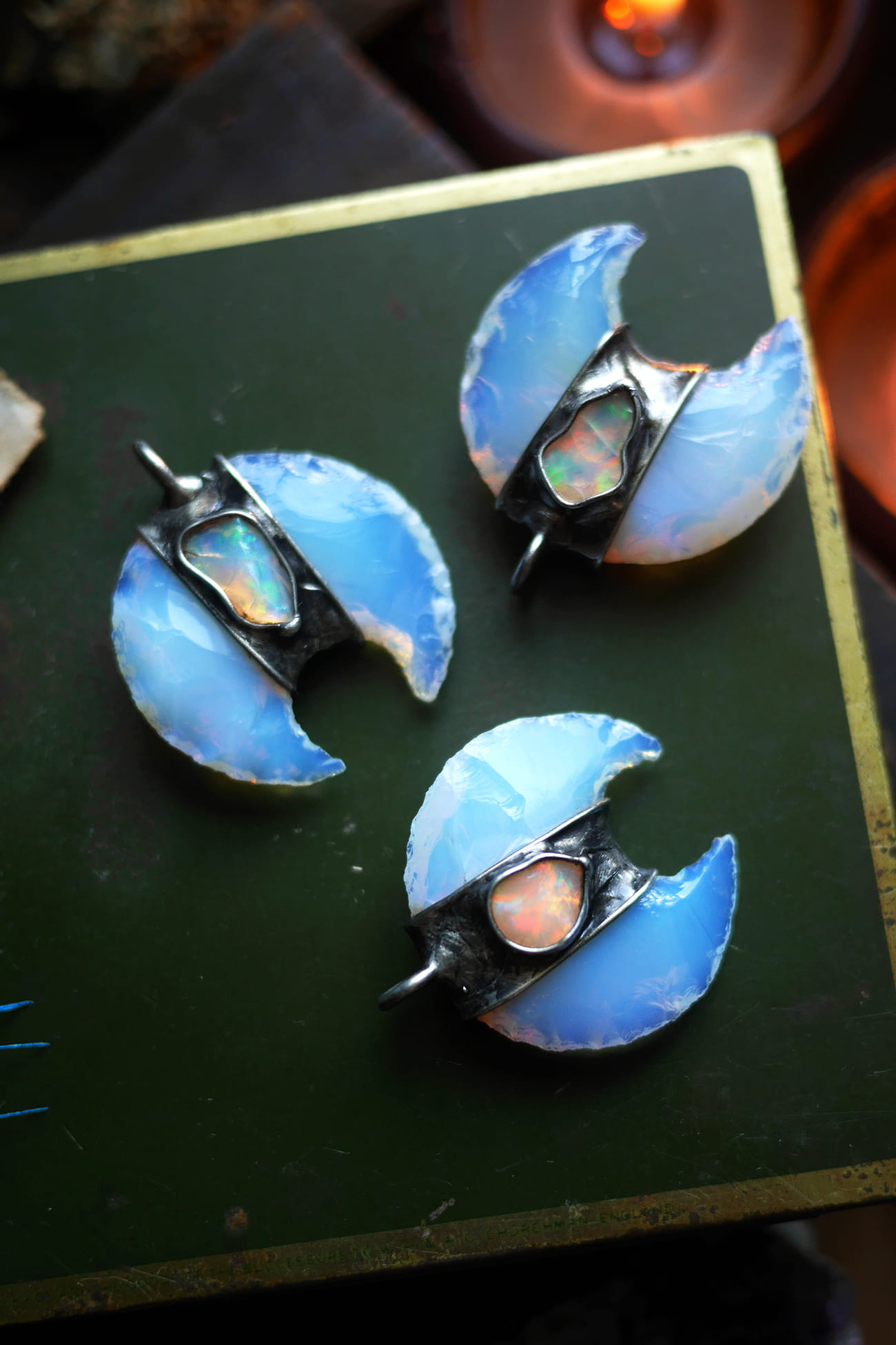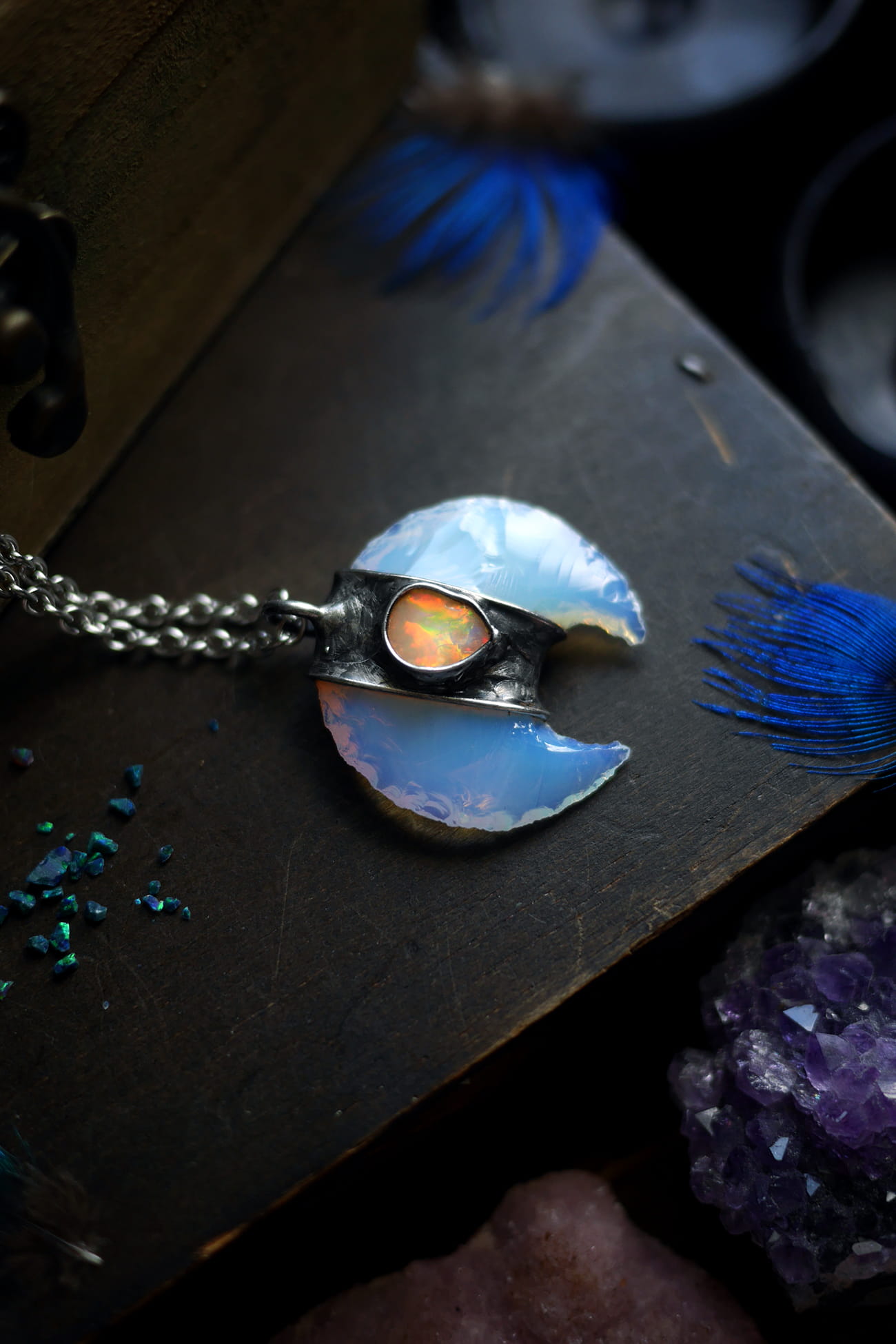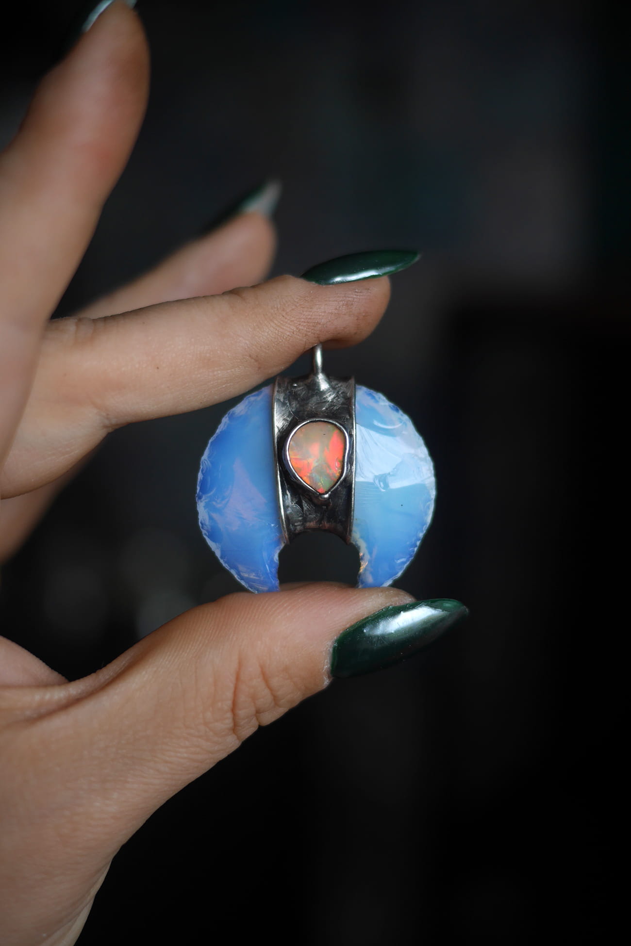 Ciosany półksiężyc z opalitu w połączeniu z opalem etiopskim.