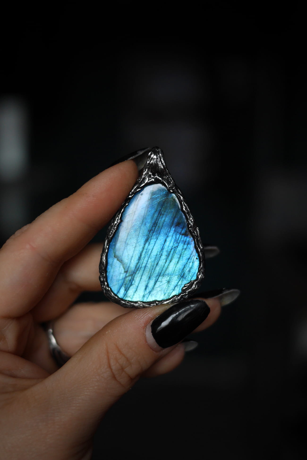Kamień: labradoryt o niebieskim ogniu.