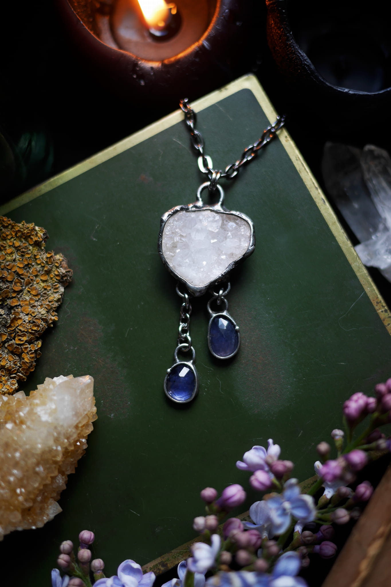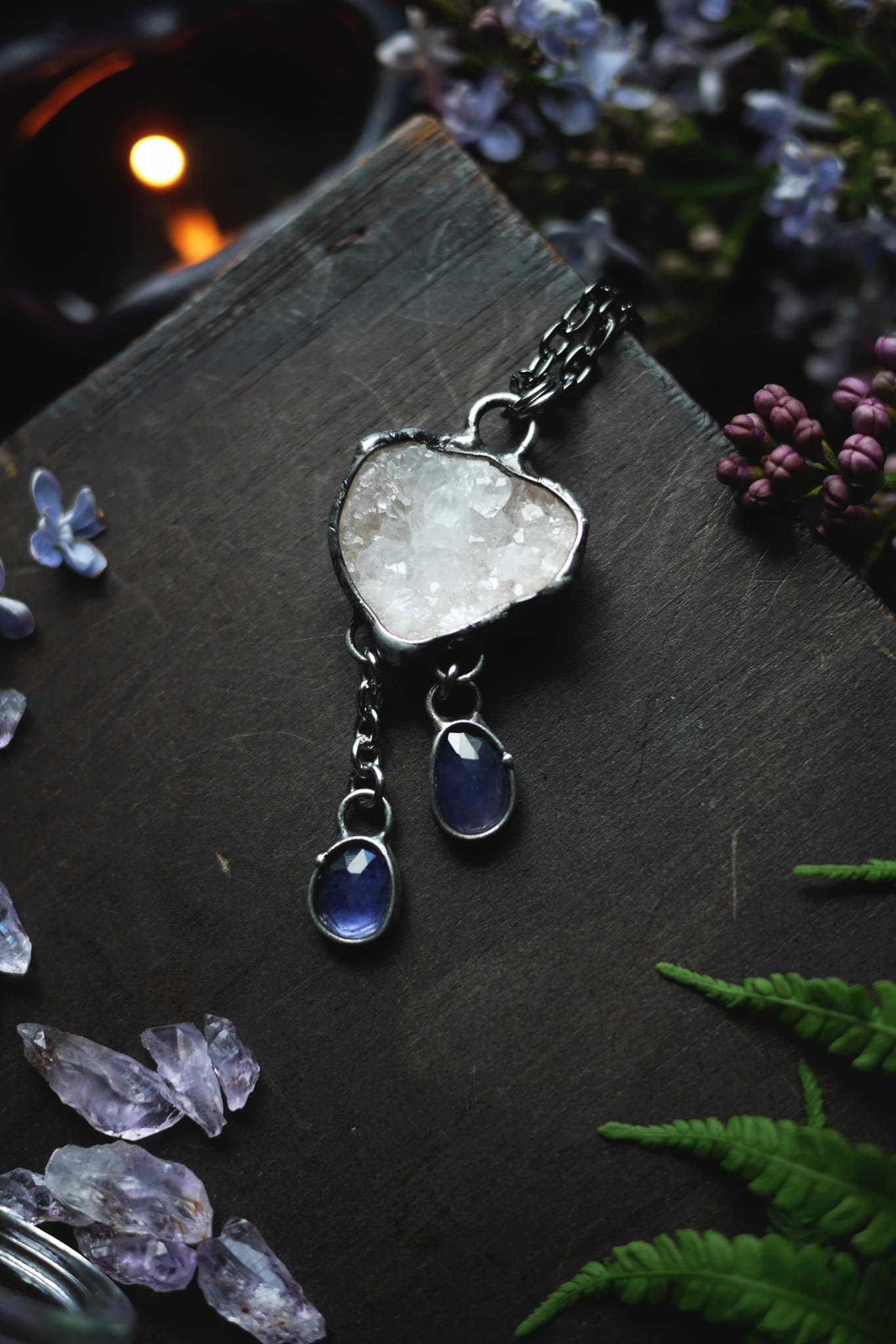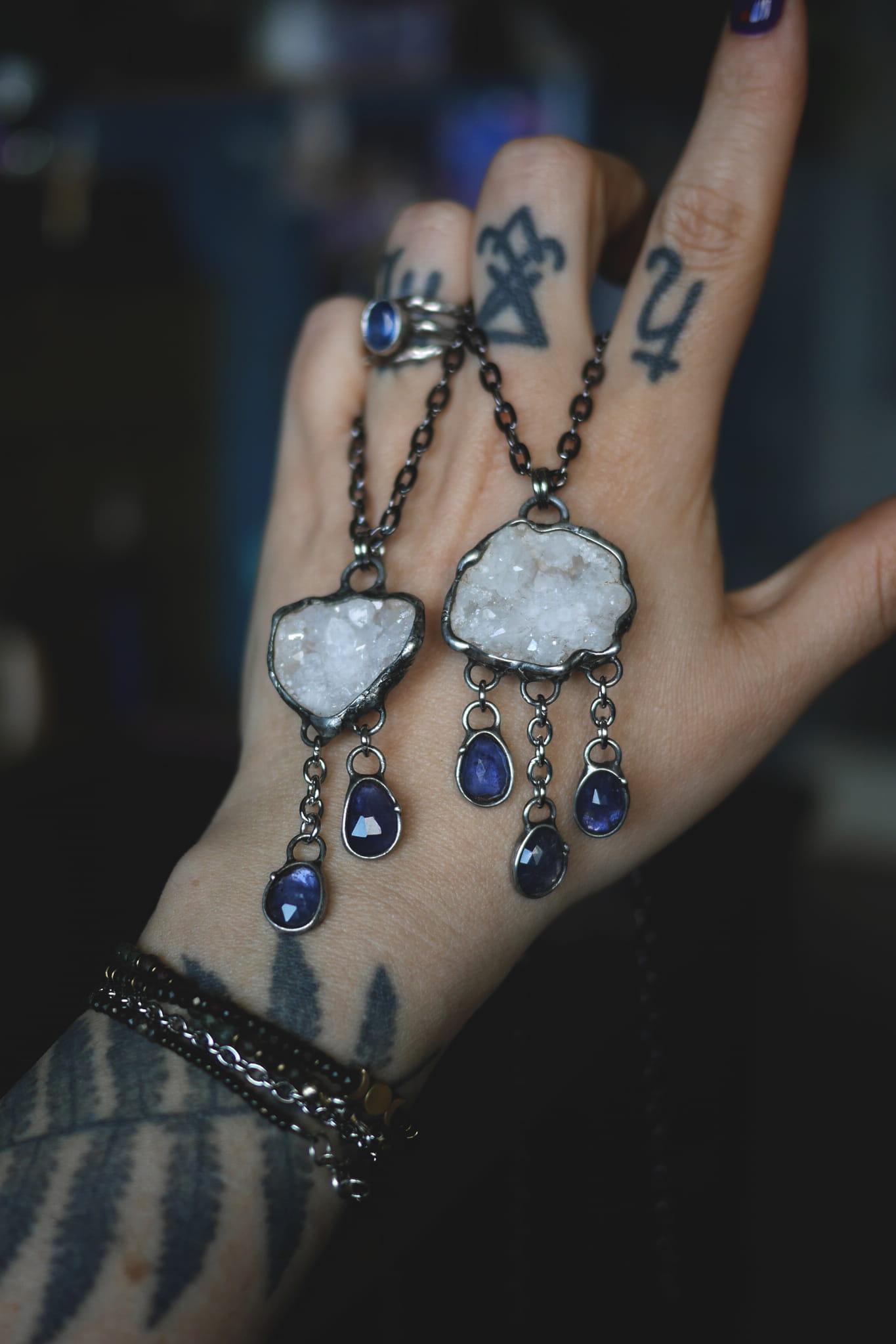 Kamień: geoda kwarcowa, fasetowany iolit.