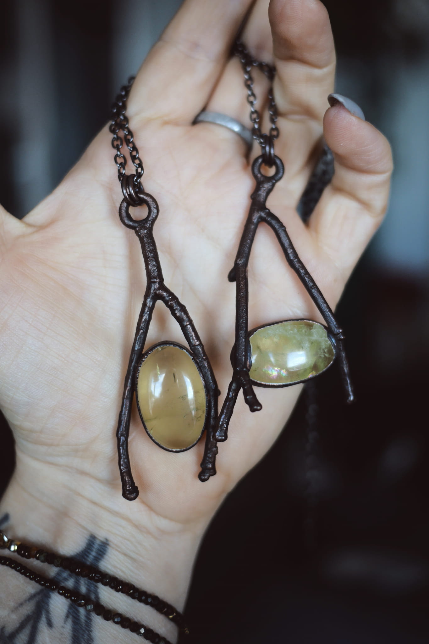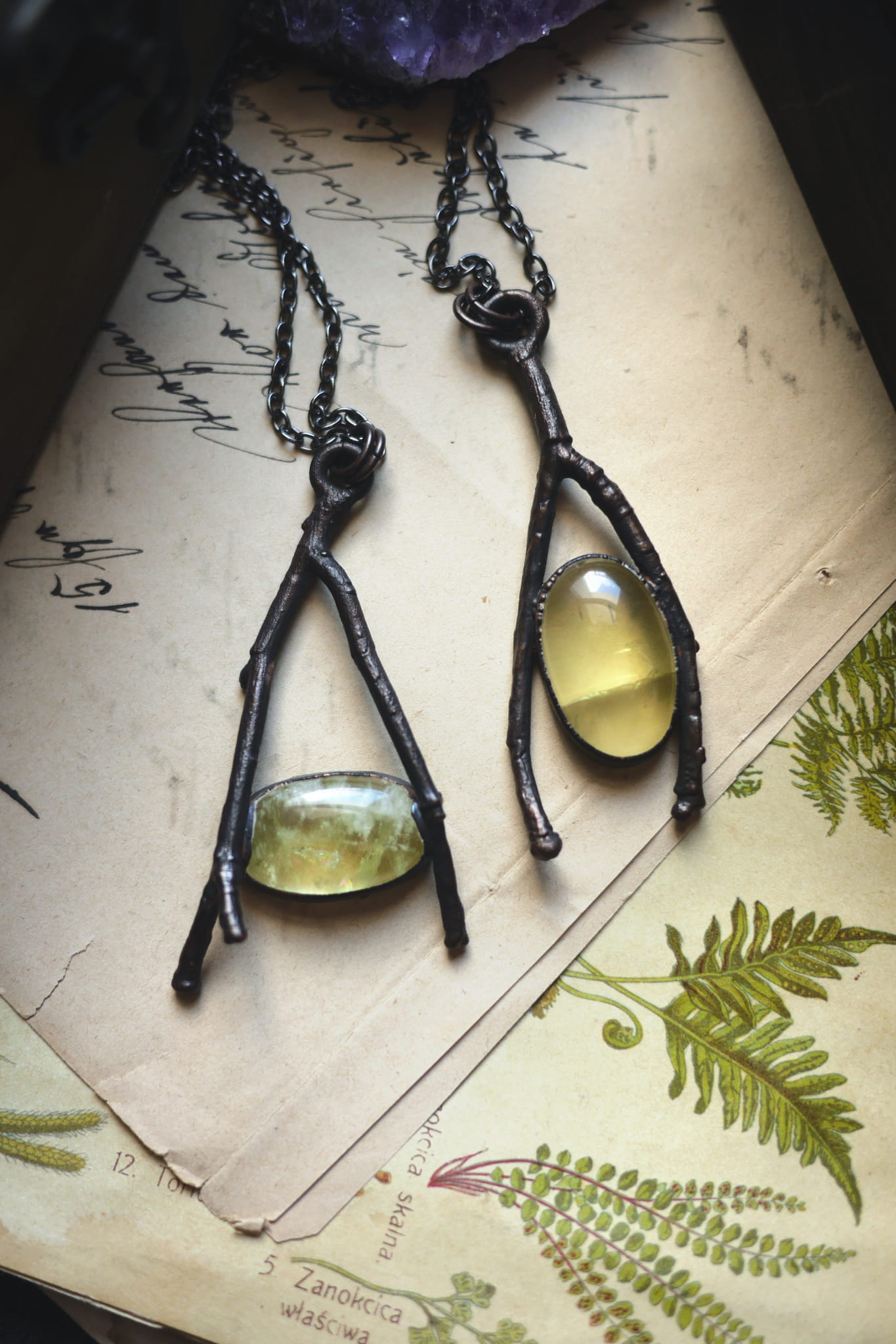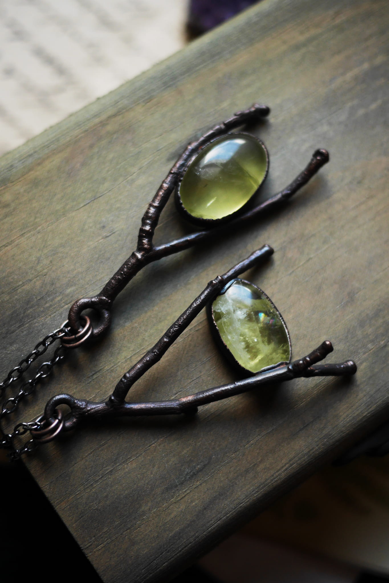 Cytryn w formie kaboszonu osadzony między prawdziwymi gałązkami.