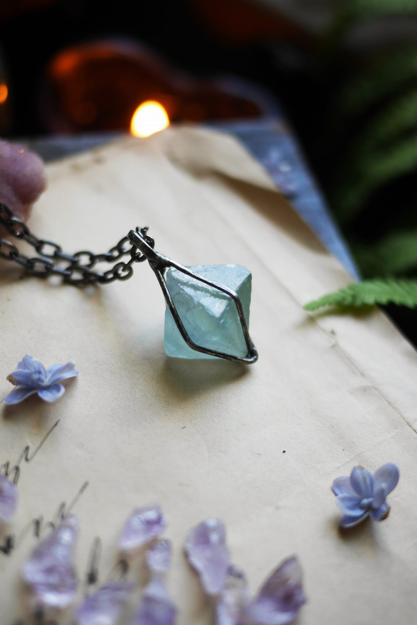 Surowy fluoryt - zawieszka na łańcuszku.