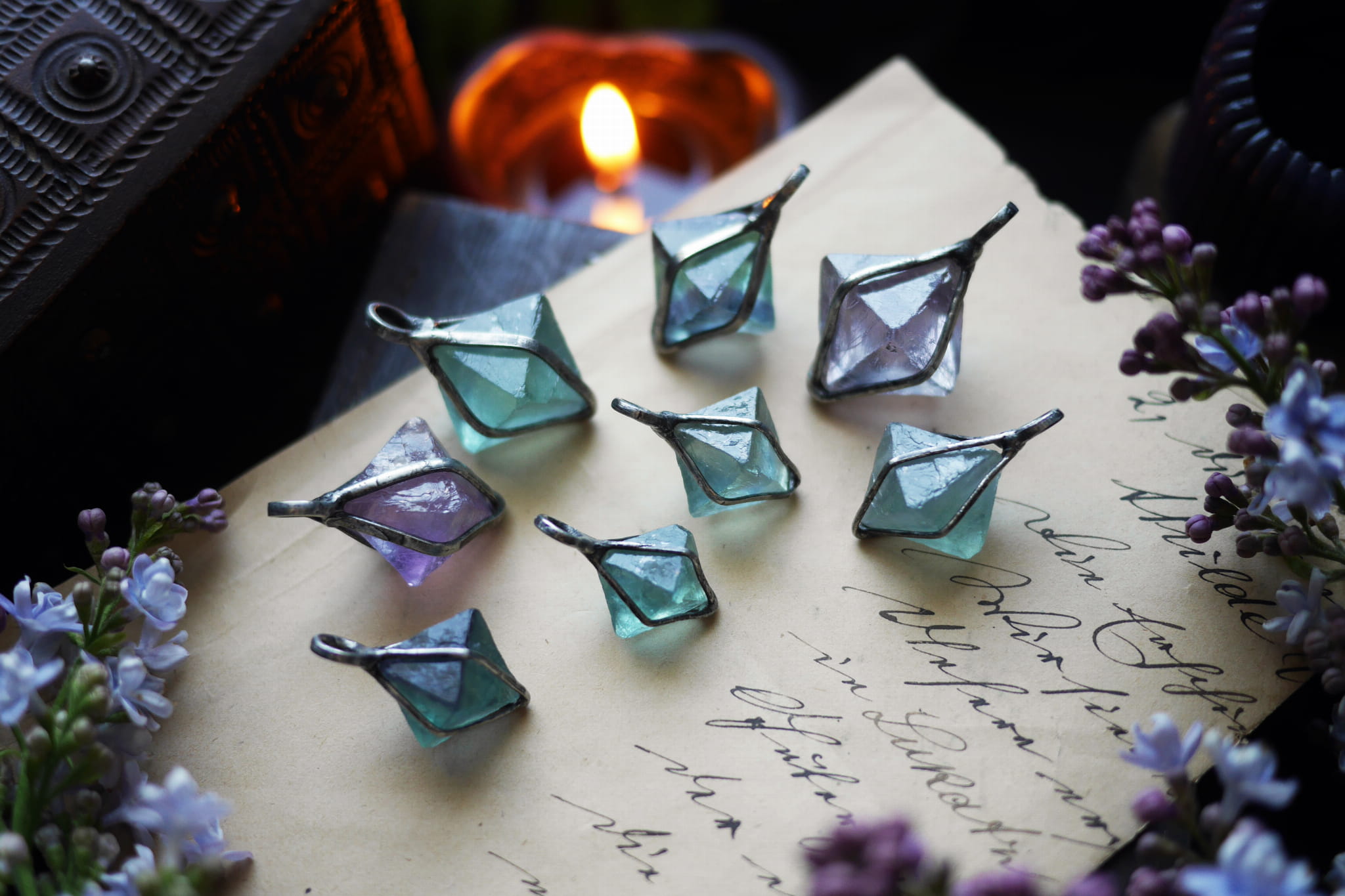 Kamień: Zielony fluoryt; surowy ośmiościan.