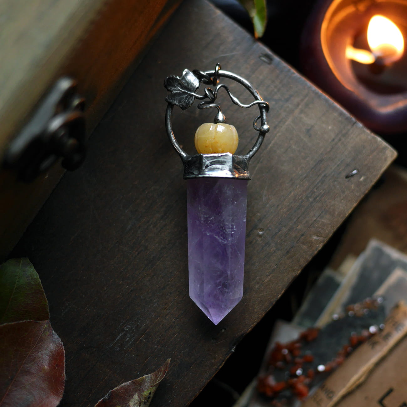 Ametyst szlifowany w szpic w połączeniu z dynią wykonaną z agatu.