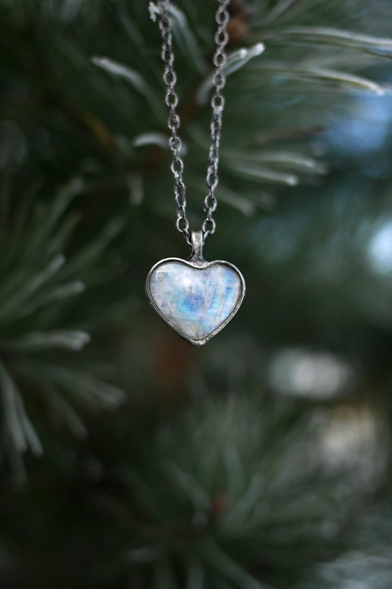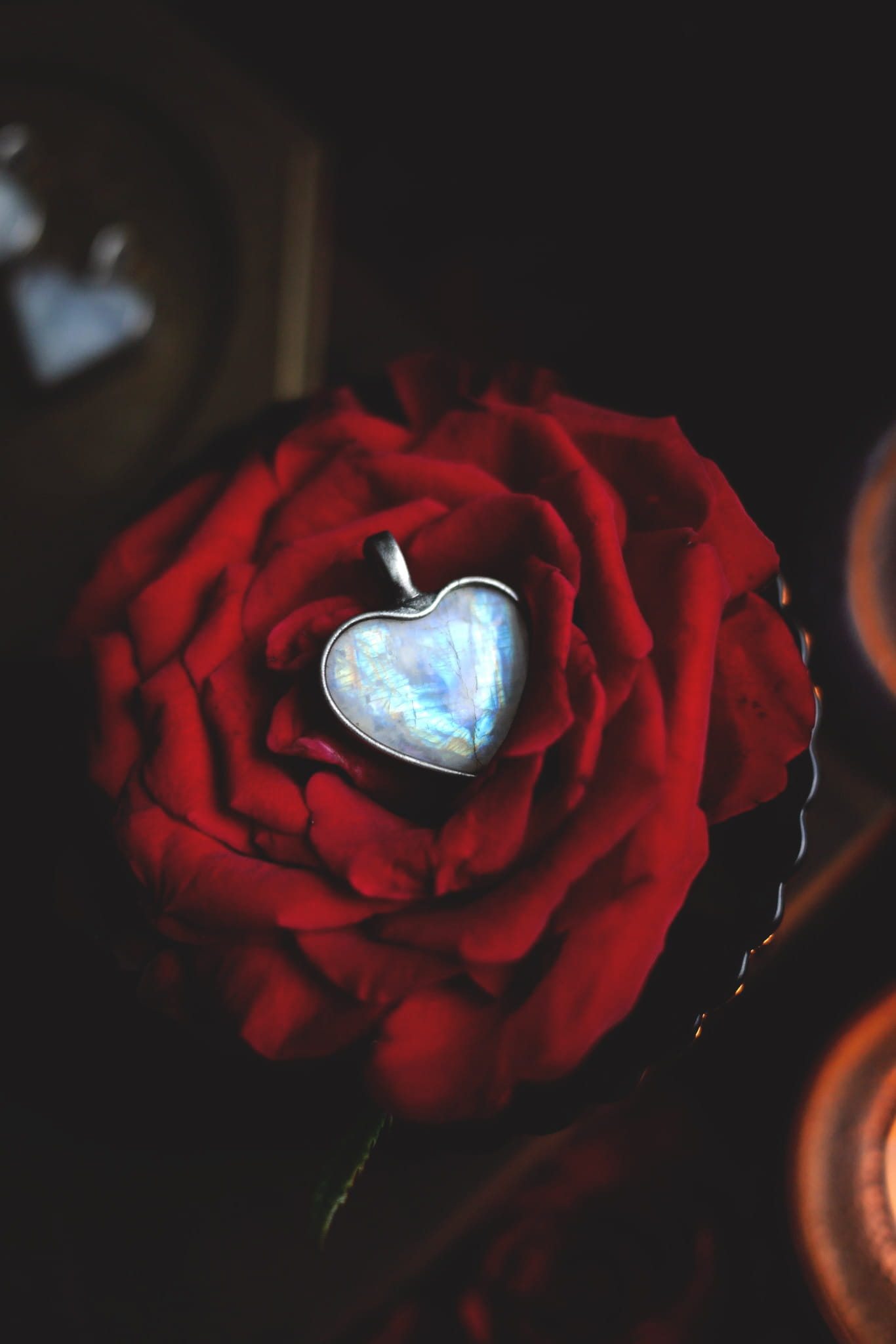 Kamień księżycowy w kształcie serca.