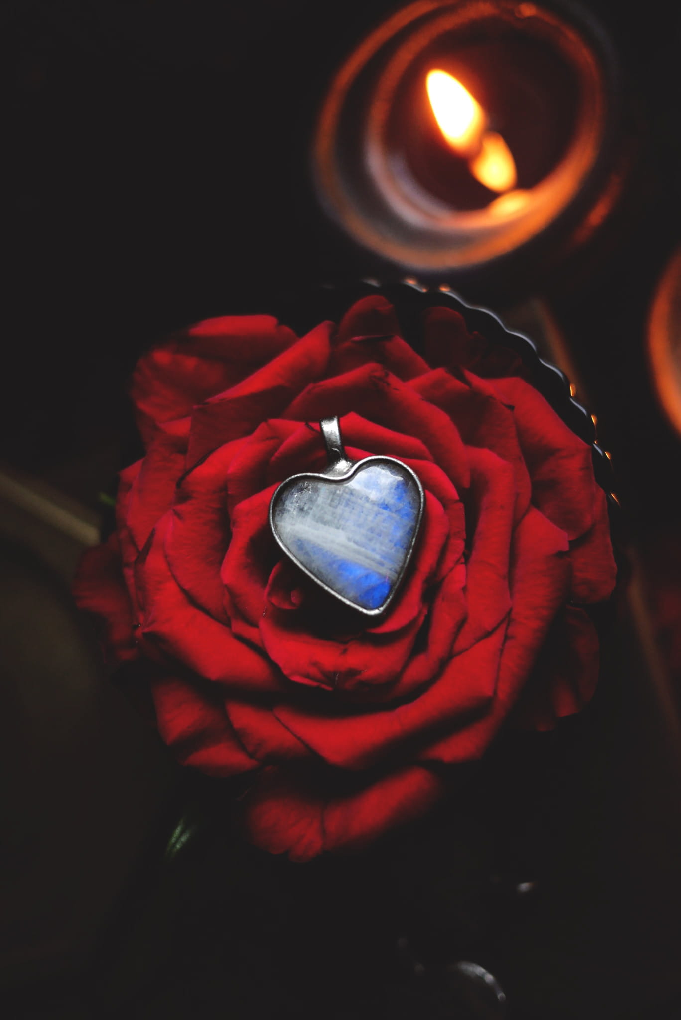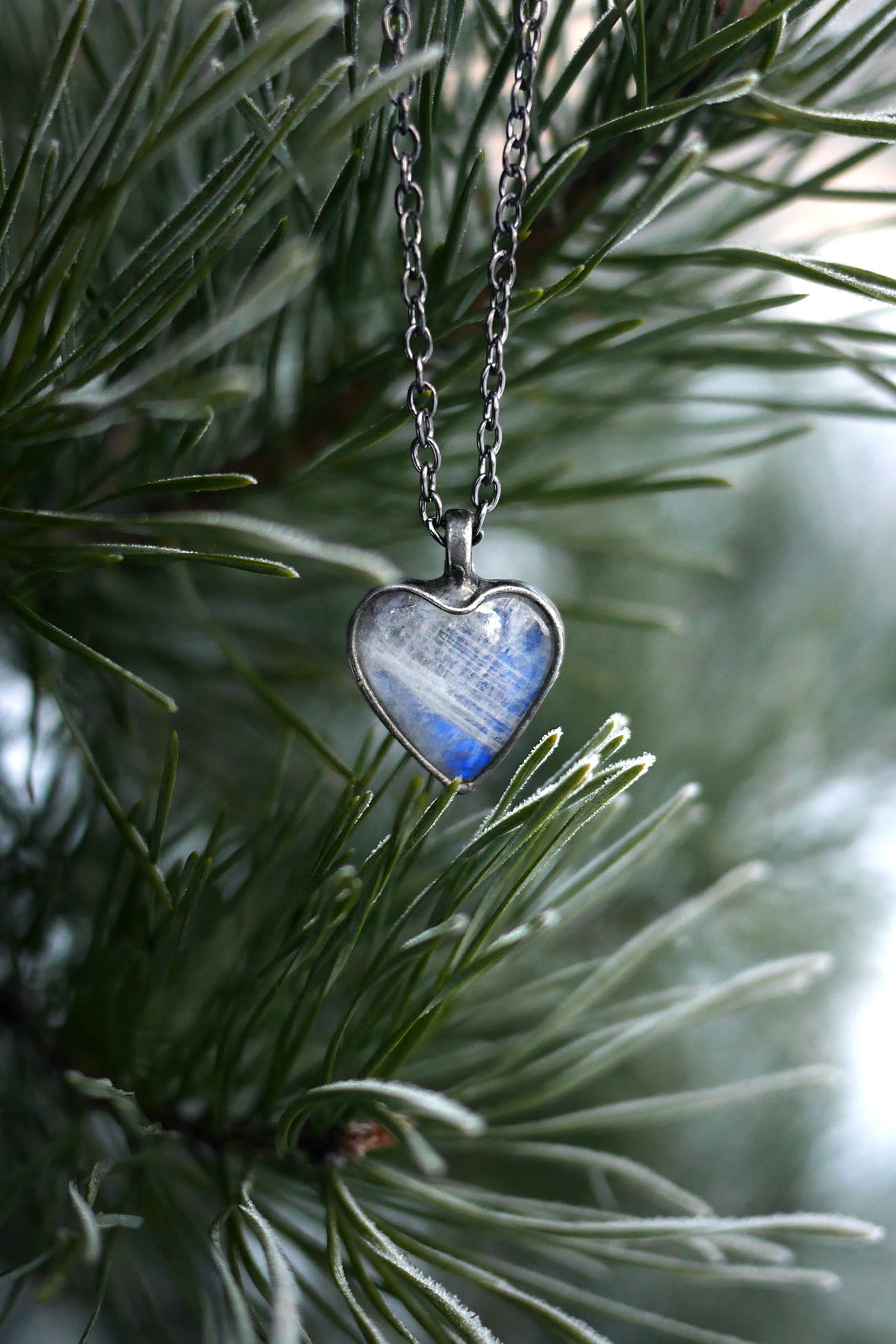 Kamień księżycowy w kształcie serca.