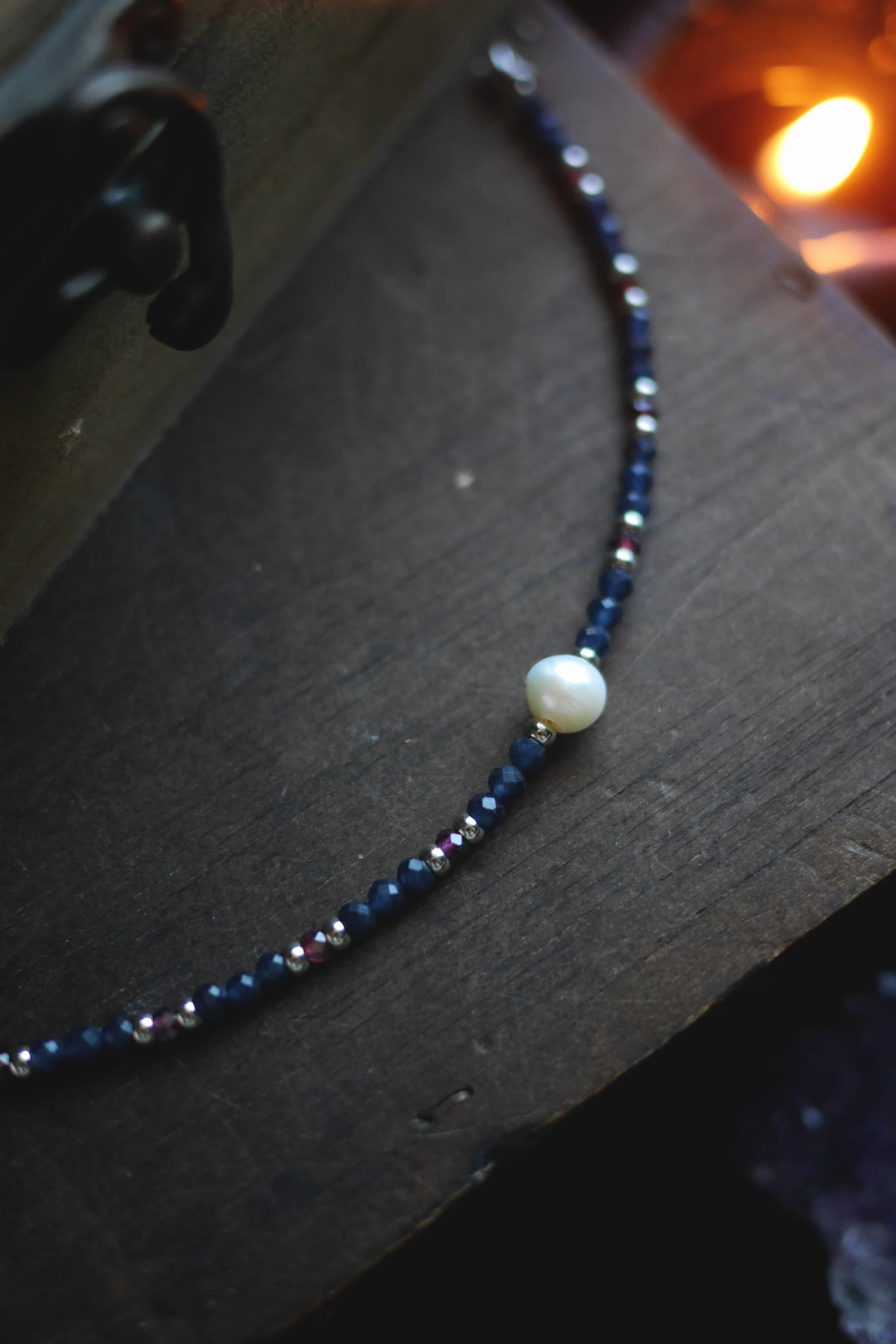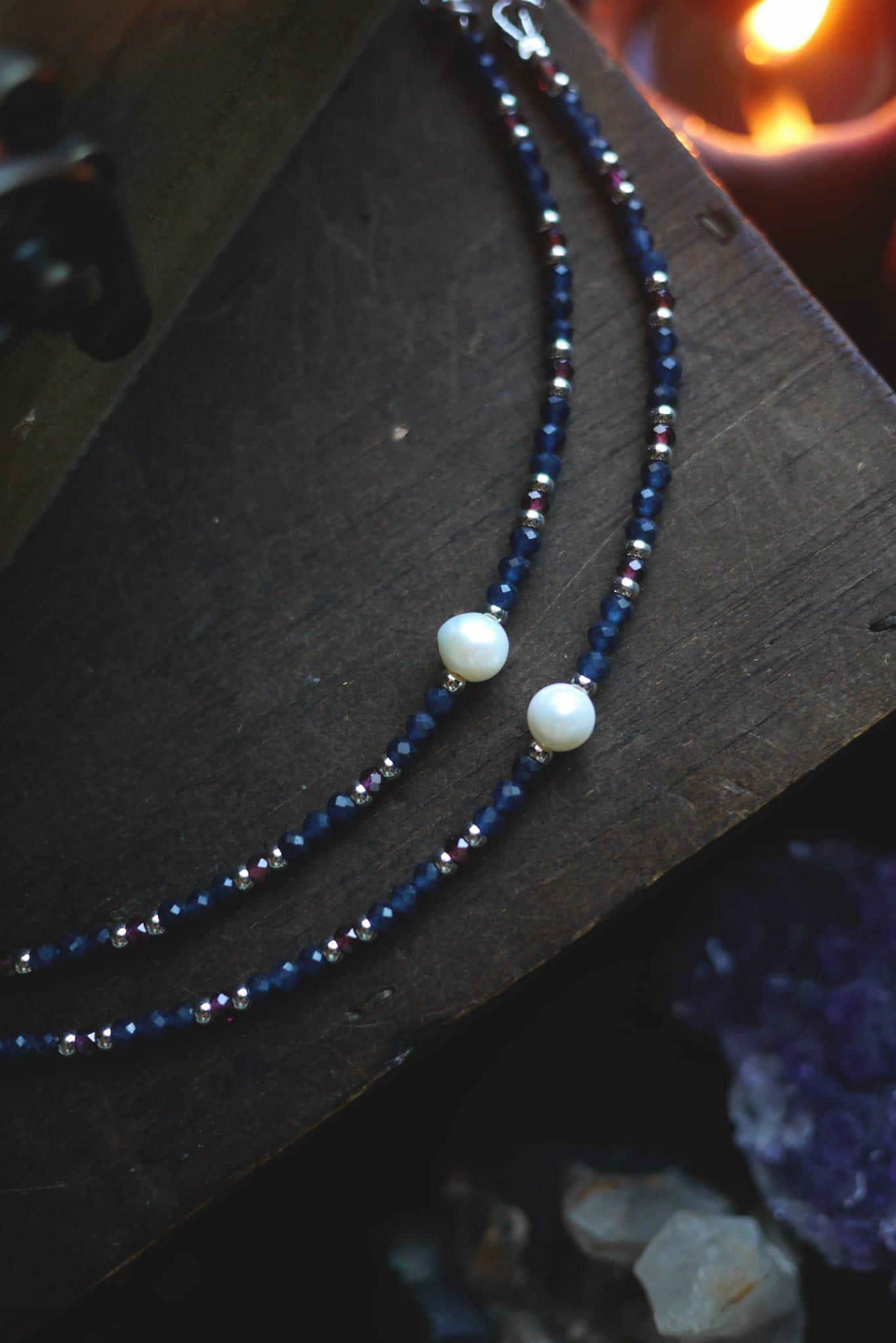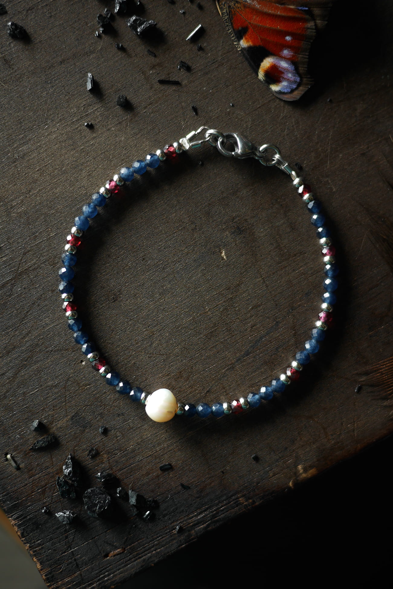 Niebieski kwarc, granat czerwony oraz perła.