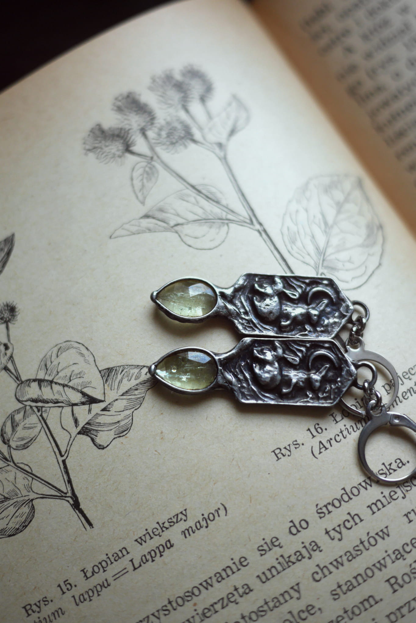 Zawieszki wykonane z miedzi i cyny bezołowiowej, patynowane oraz polerowane.