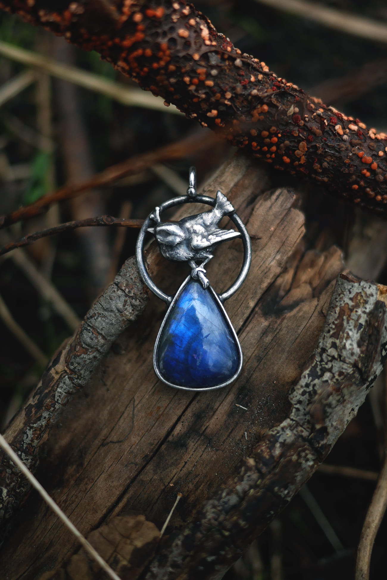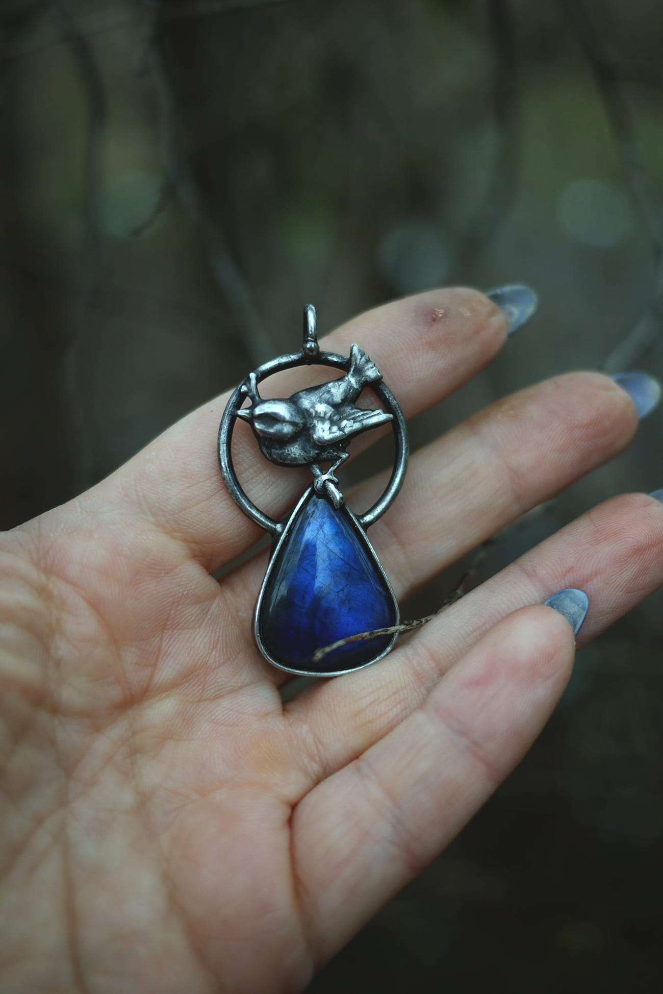 Kamień: labradoryt o granatowym ogniu.