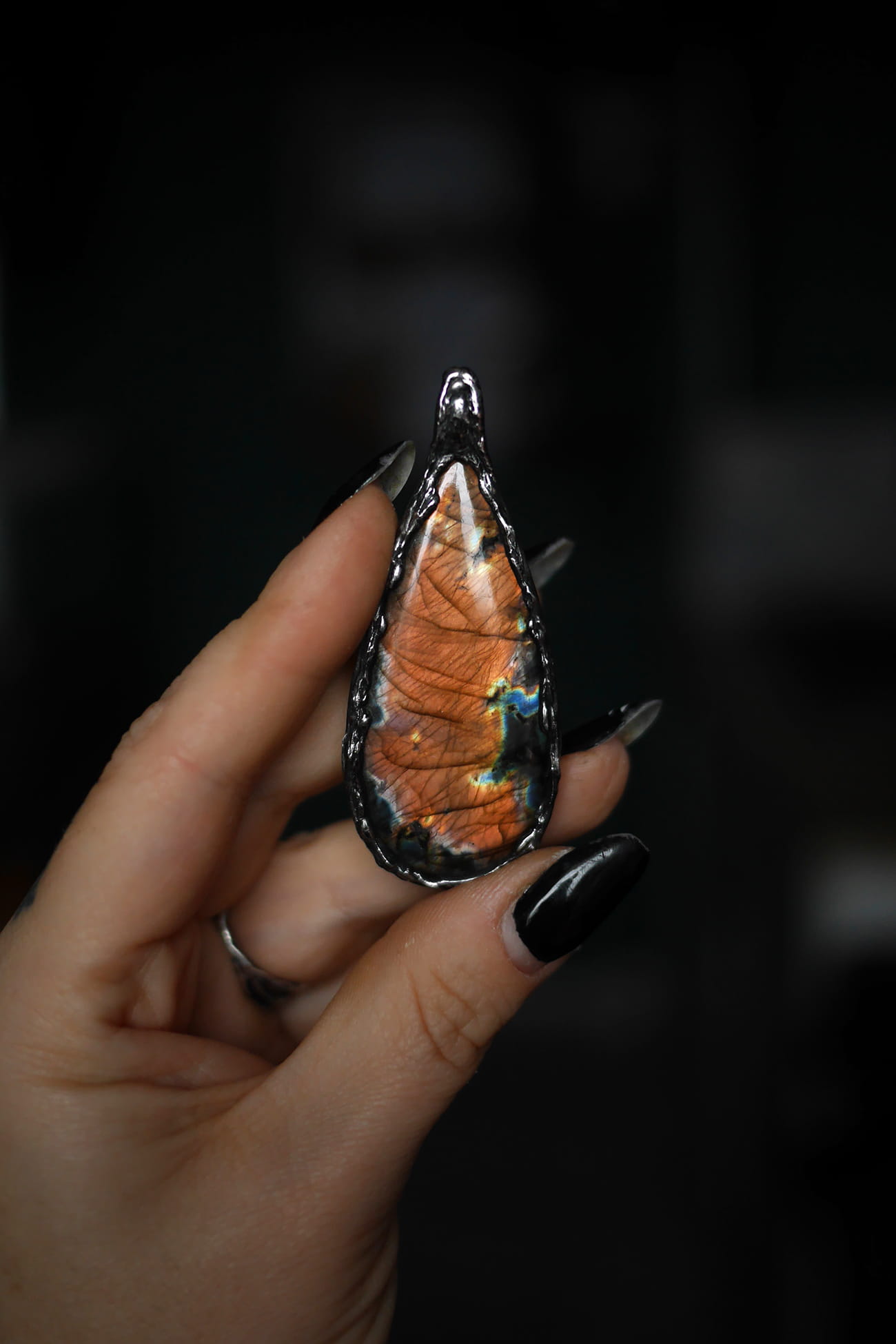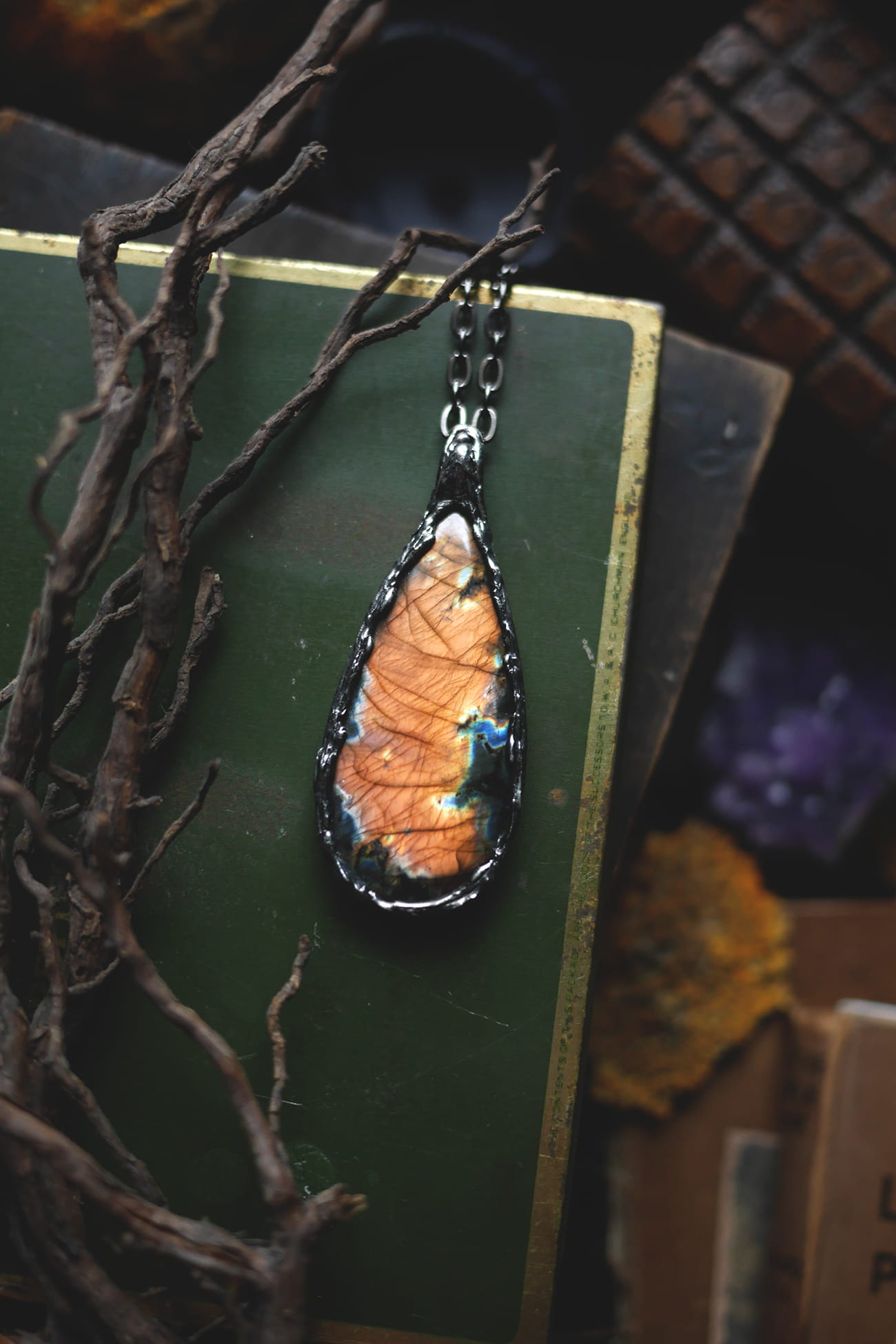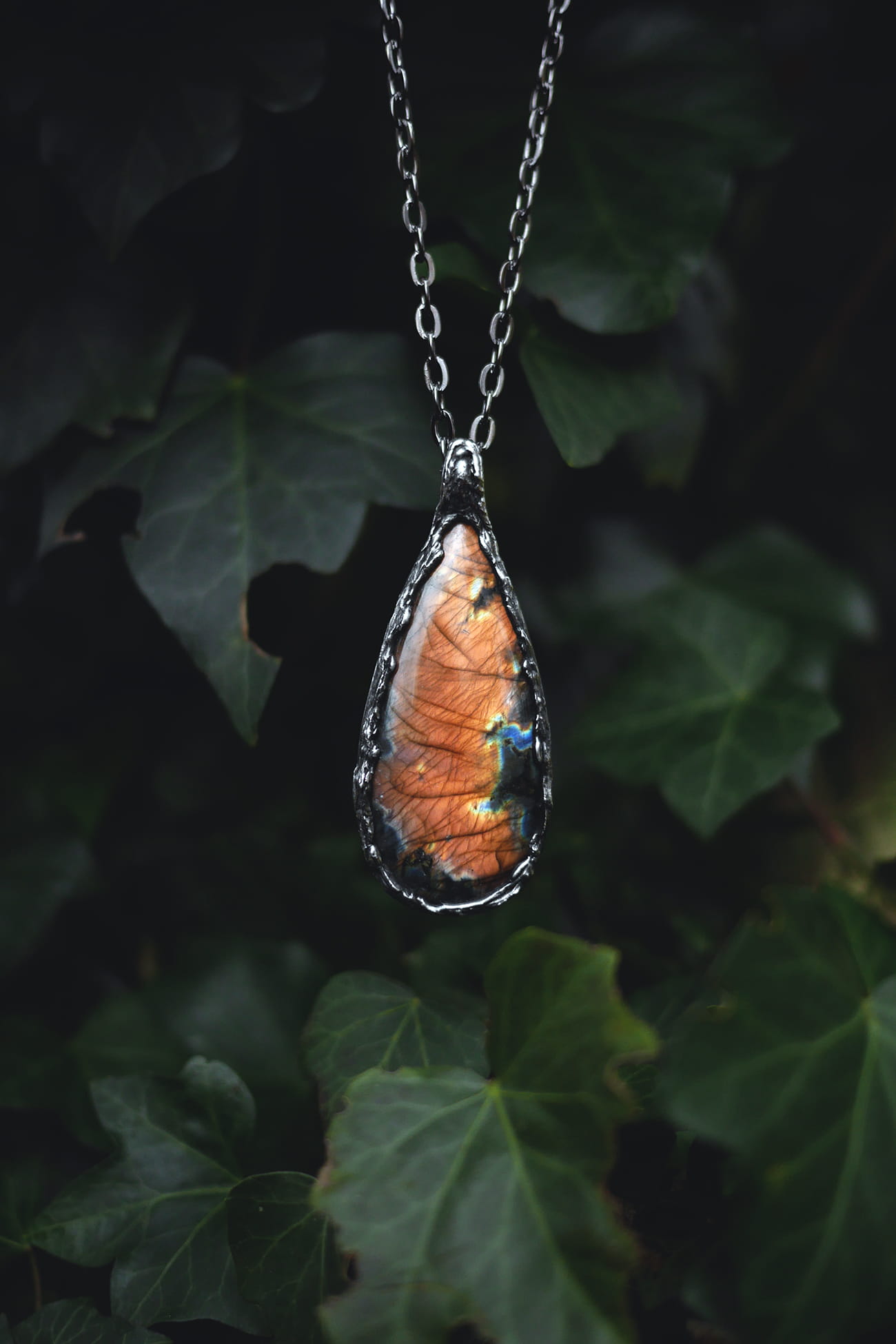 Ogniwko przez które przechodzi łańcuszek zintegrowane z ręcznie formowaną oprawą o unikalnej strukturze.