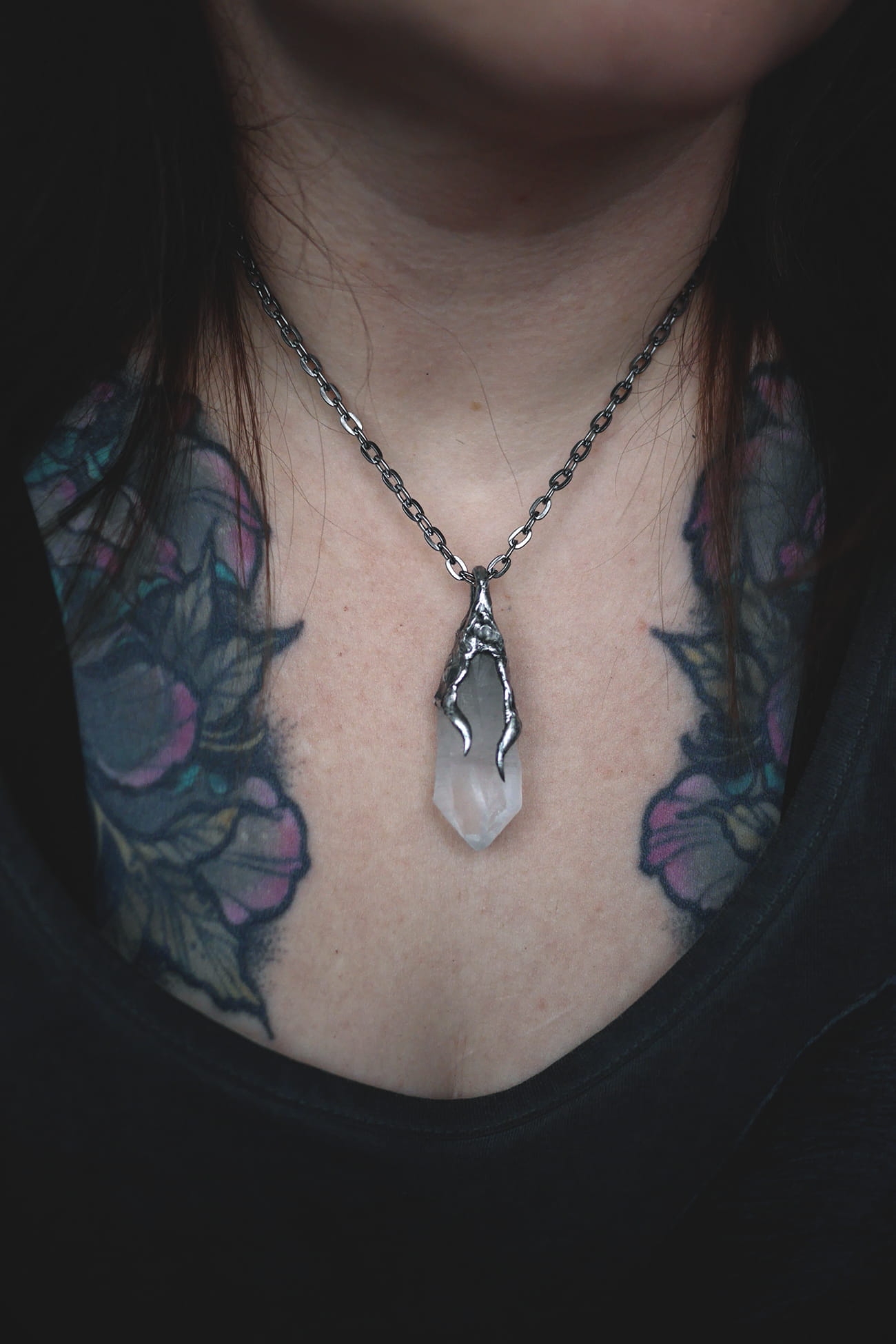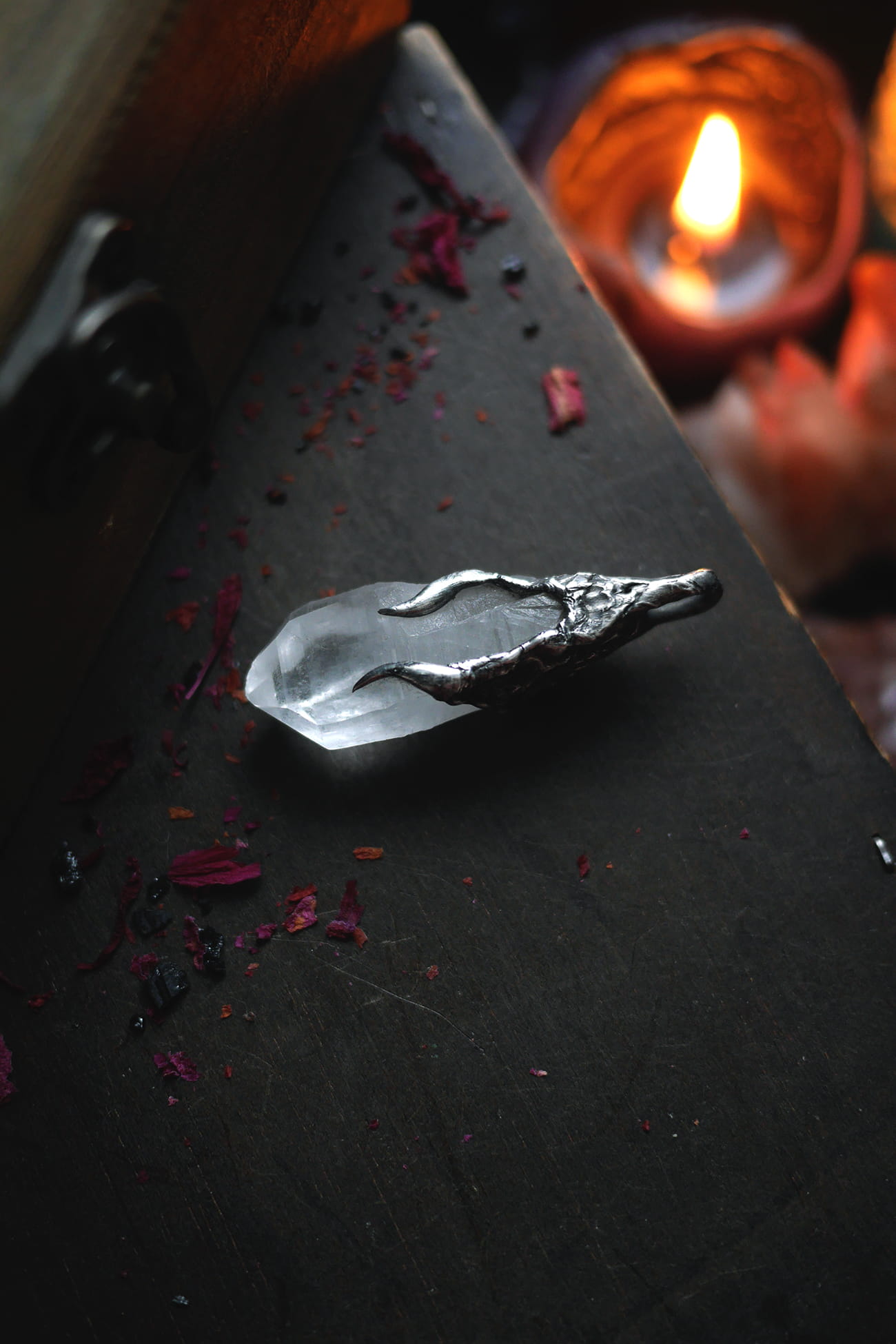 Surowy kwarc w ręcznie formowanej oprawie z cyny.