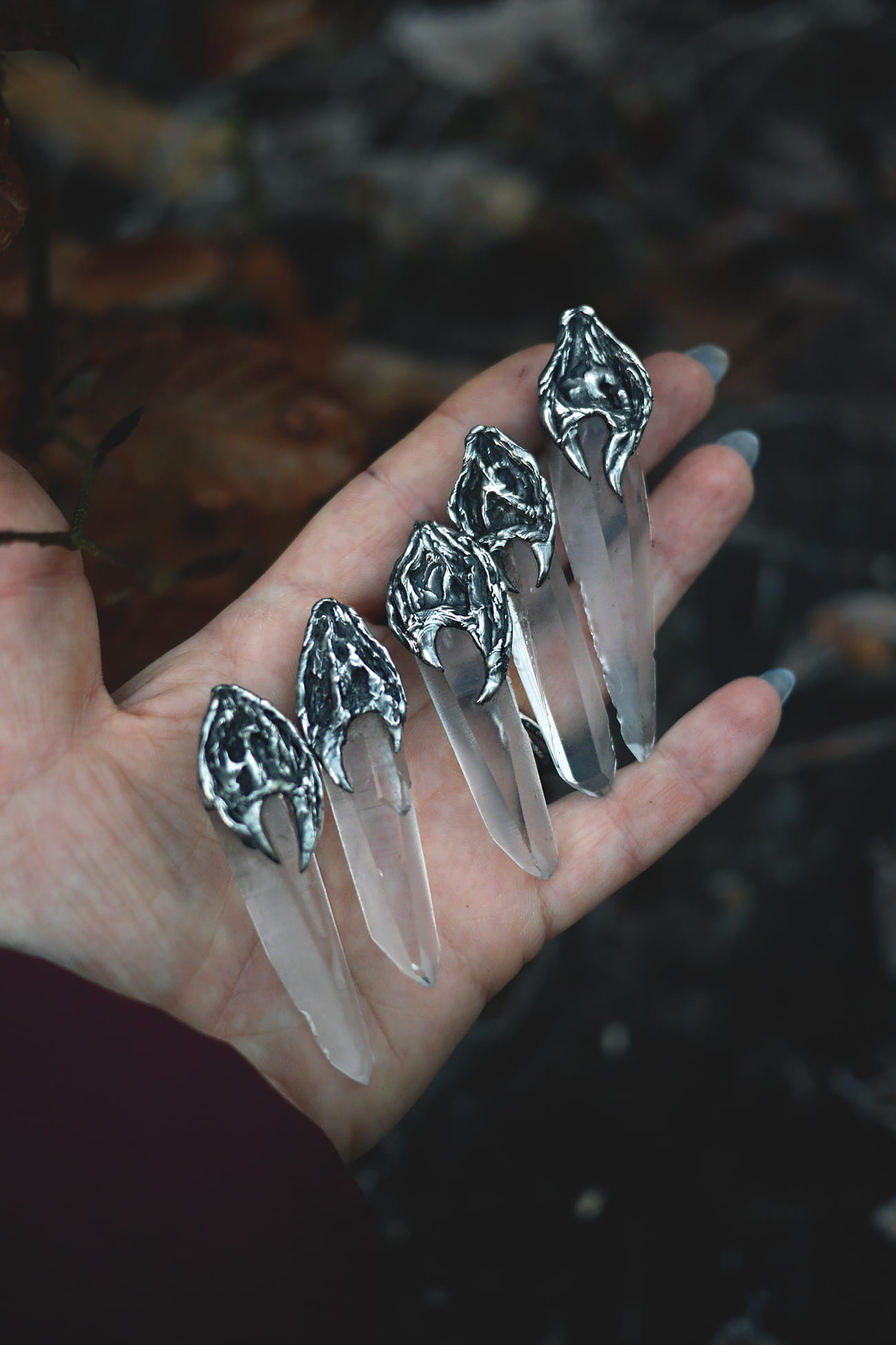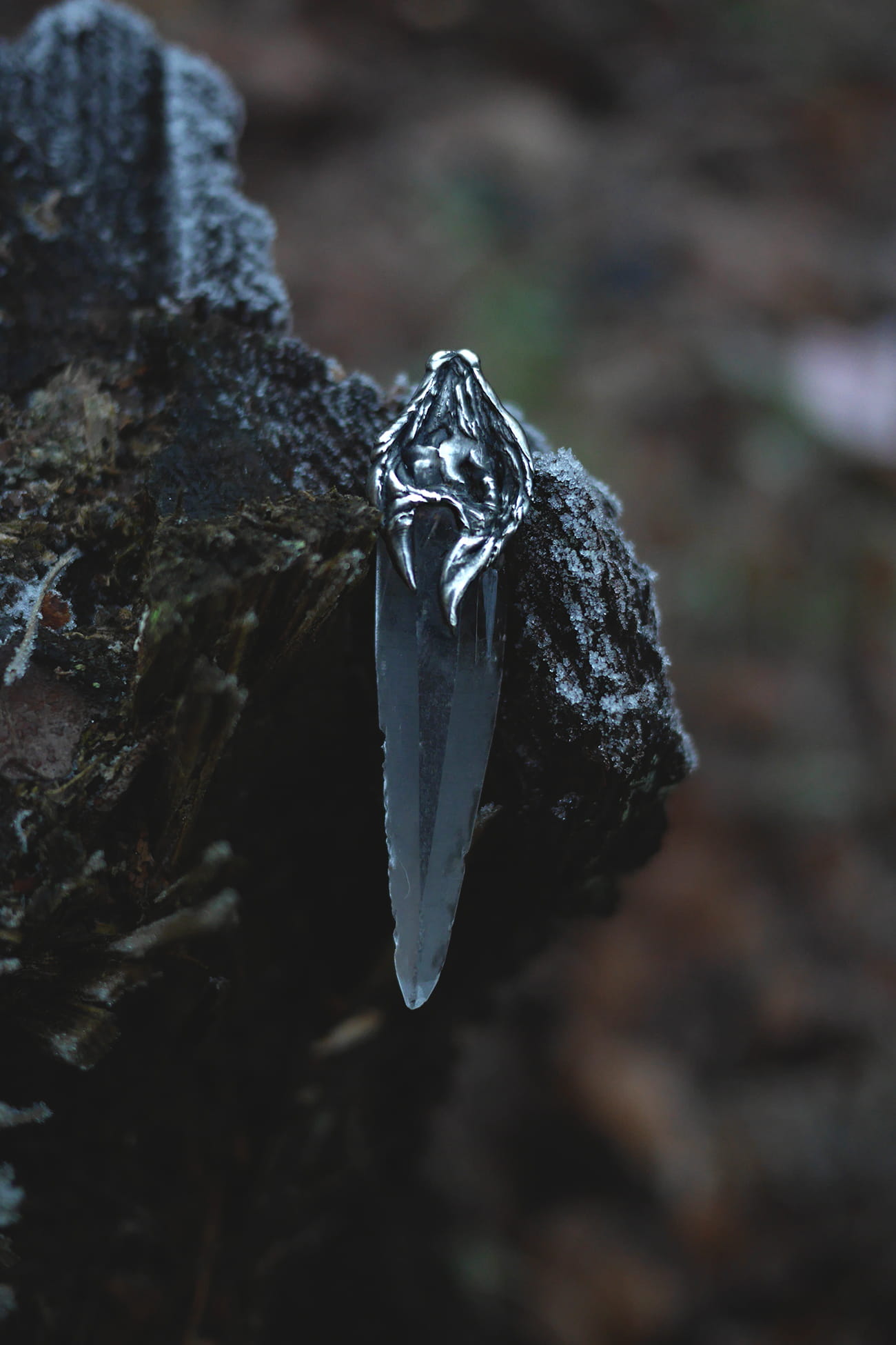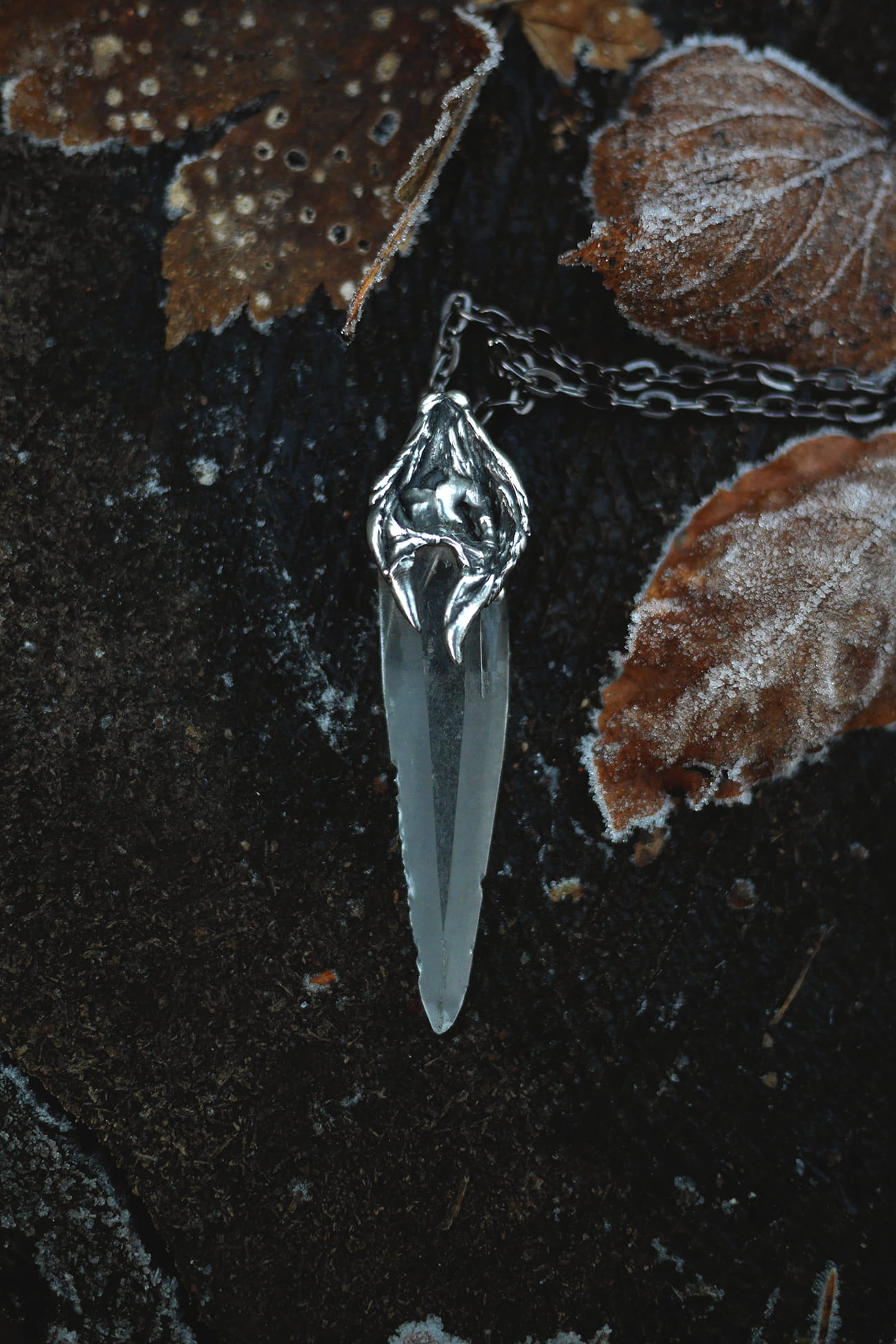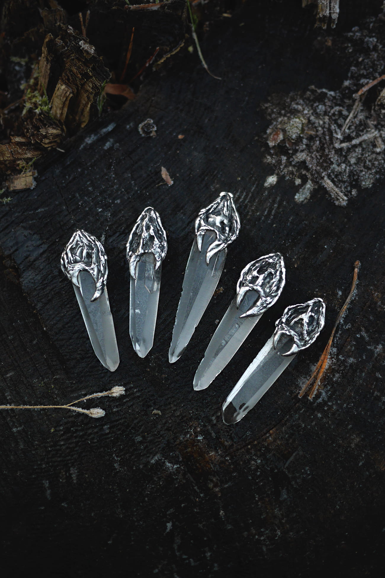 Surowy kwarc lemuriański w ręcznie formowanej oprawie z cyny.